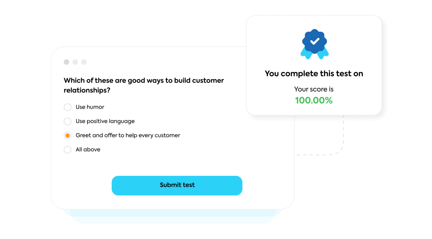 Design your own quizzes, tests, assignments, and surveys to assess both your learners and the effectiveness of your content. Issue personalized certificates to recognize your team's training achievements.